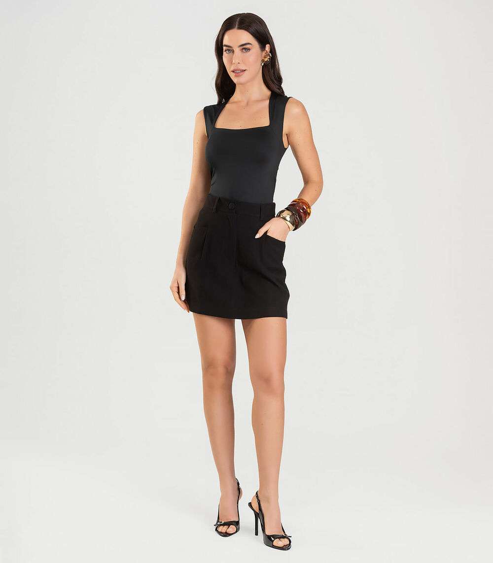 Shorts Saia Feminino Evasê Em Sarja Dianna Preto