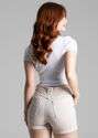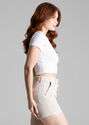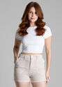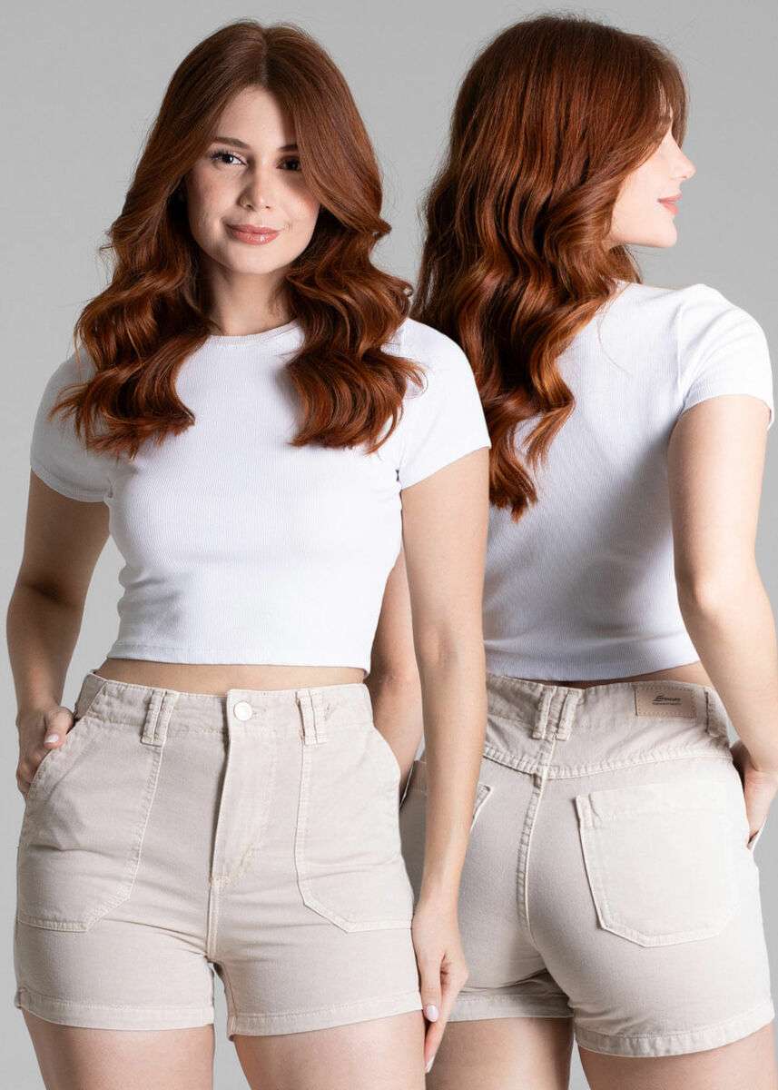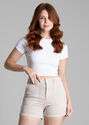 Short feminino desenvolvido em sarja A modelagem tem quadril soltinho. Bolsos frontais e posteriores funcionais O cós tem passantes e fechamento por zíper e botão A barra tem acabamento desfiado. Tecido: sarja Tipo de lavagem: color Cor: Bege