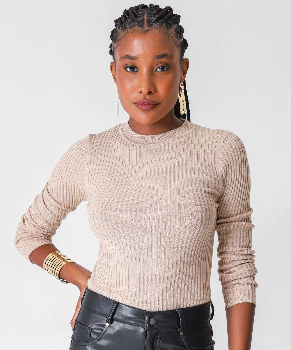 Suéter Feminino Canelado Marisa Bege