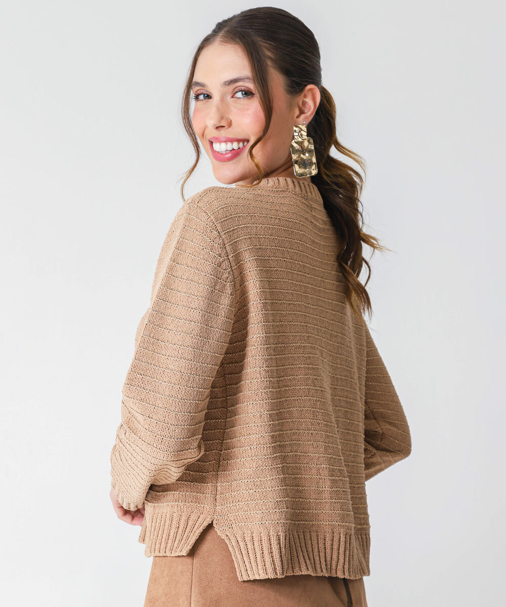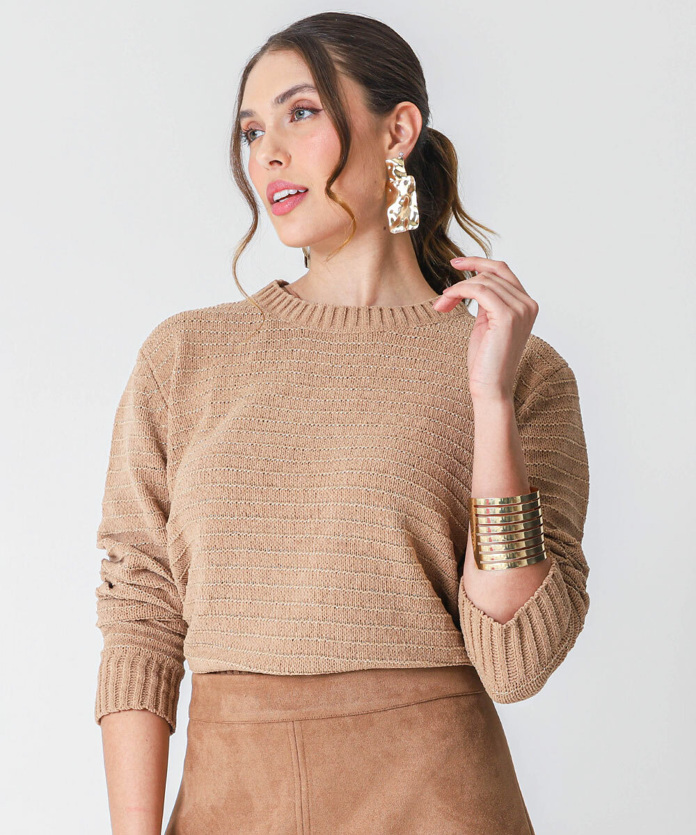 Suéter Feminino Chenille Brilho Lurex Marisa Bege