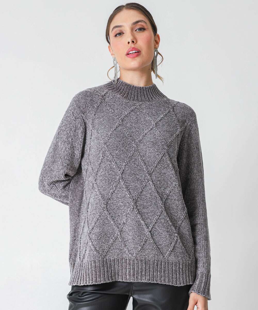 Suéter Feminino Chenille Trabalhado Marisa Cinza