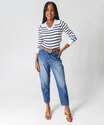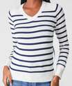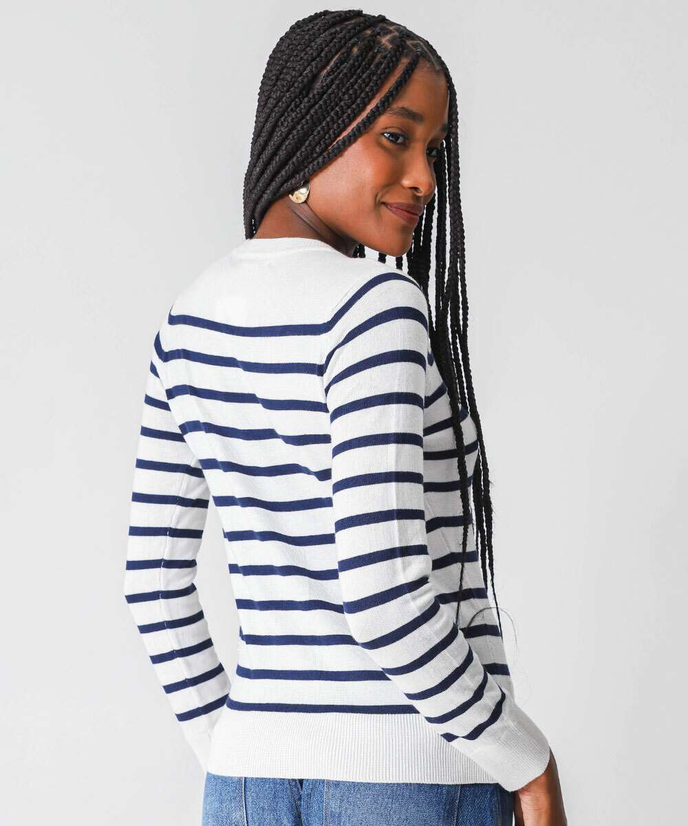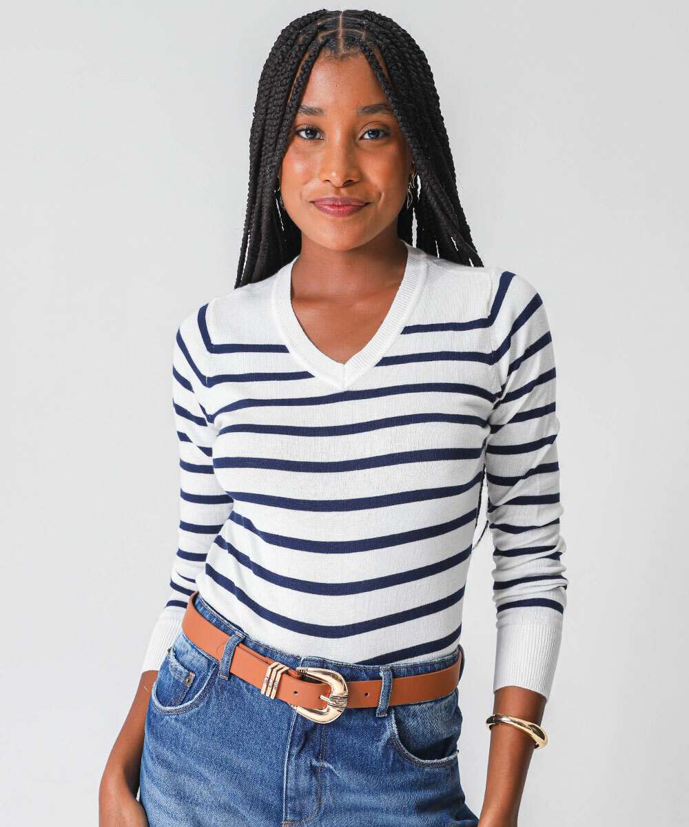 Suéter Feminino Listrado Gola V Marisa Off White