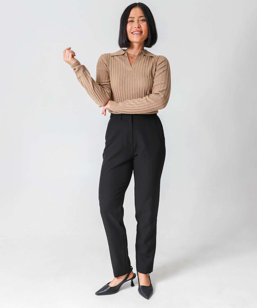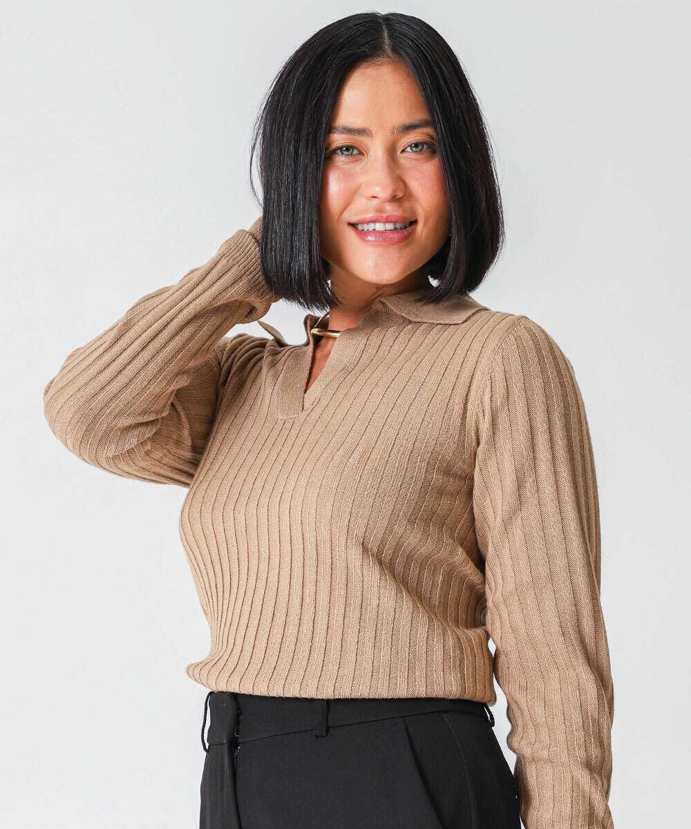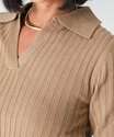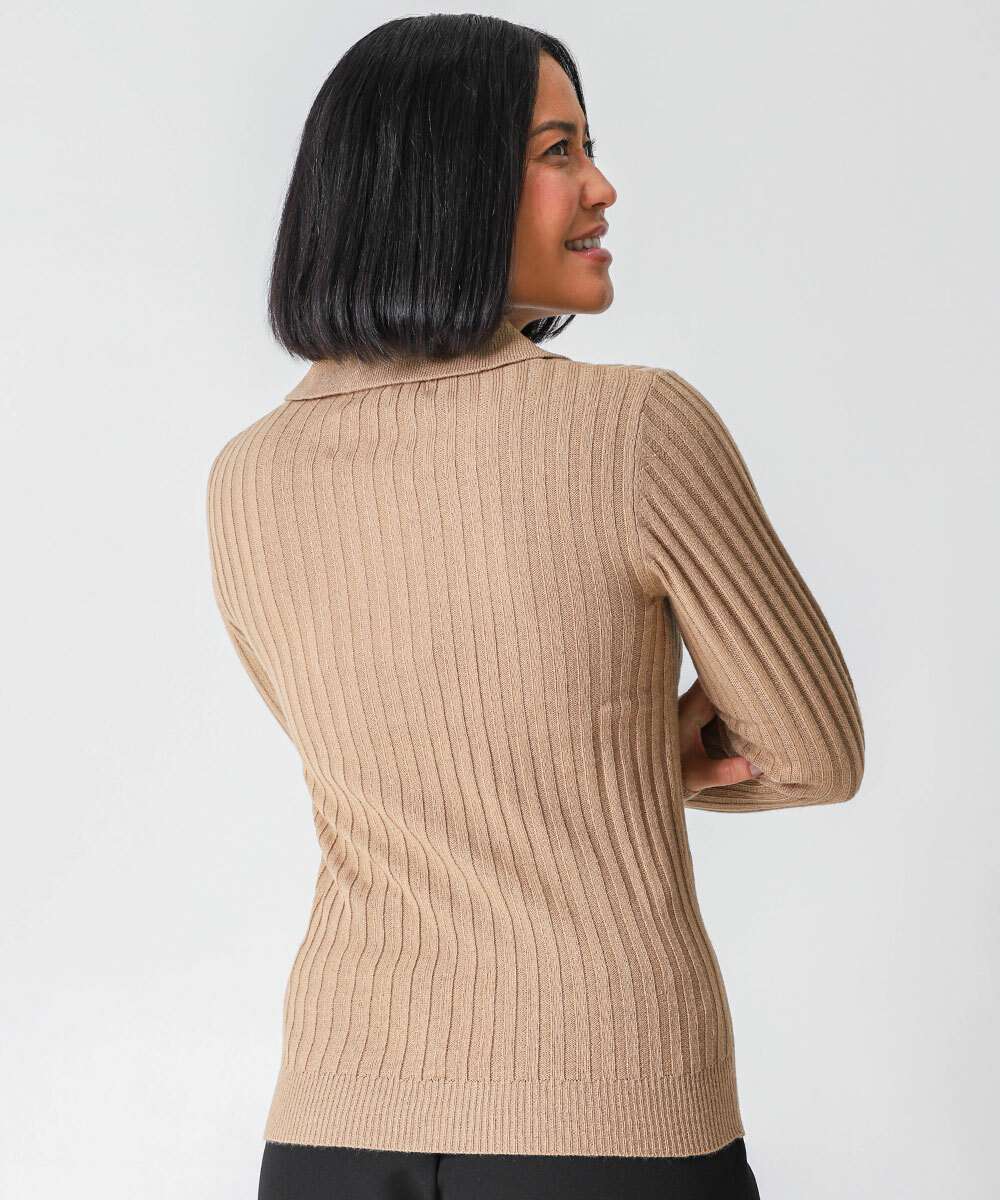 Suéter Feminino Polo Textura Manga Longa Marisa Bege