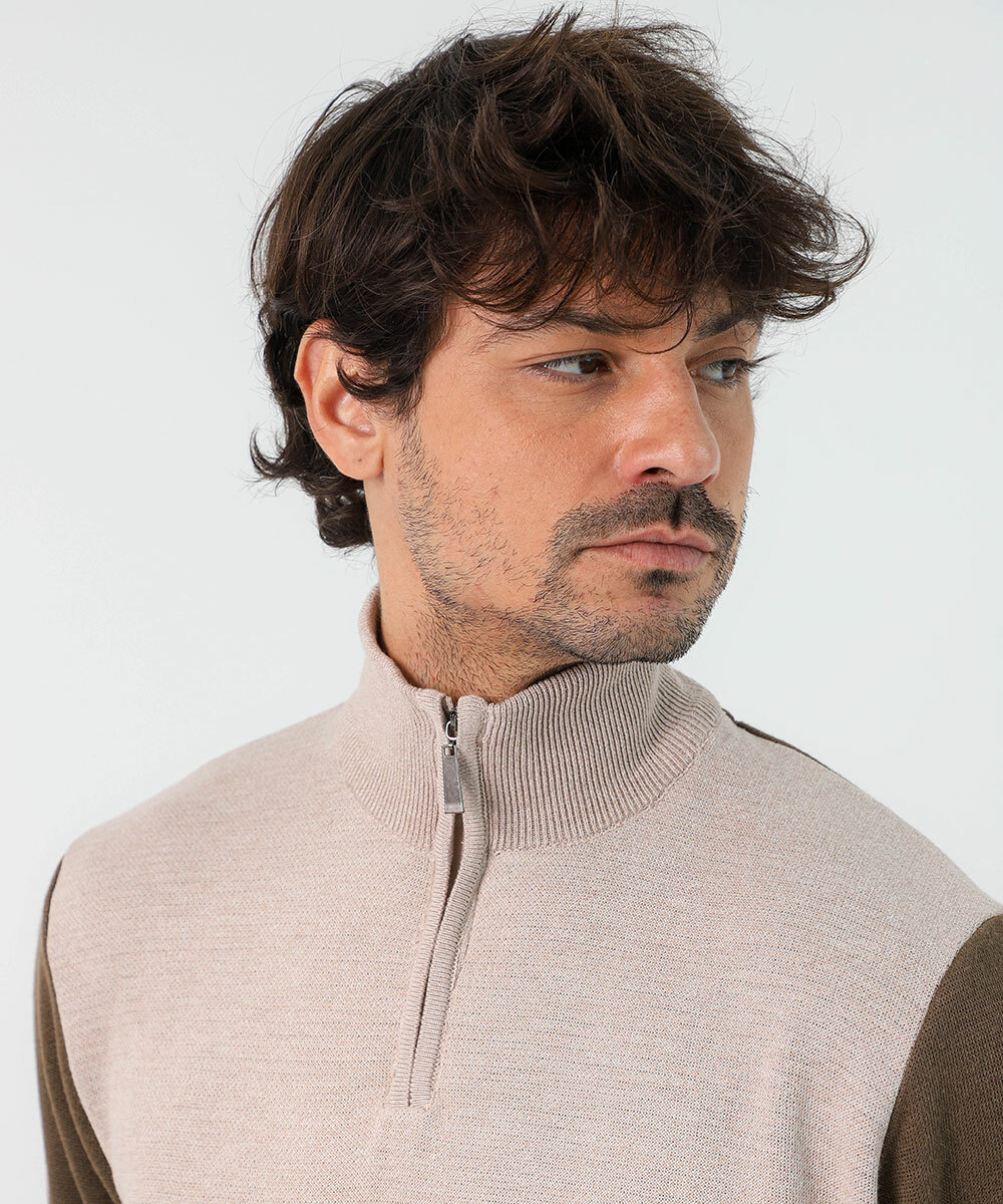 Suéter Masculino Tricô Half Zíper Recortes MR Verde