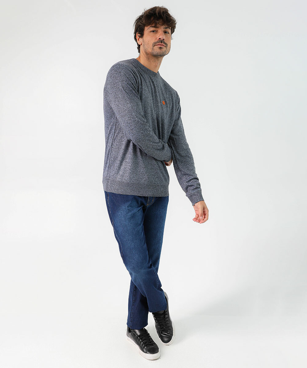Suéter Masculino Tricô Mescla Marisa Azul