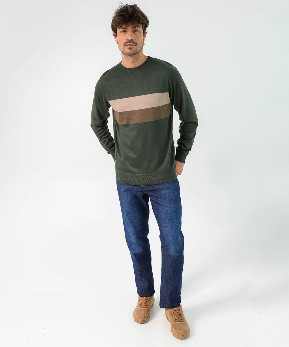 Suéter Masculino Tricô Recortes Marisa Verde