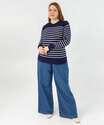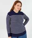 Suéter Plus Size Feminino Tricô Listrado Pérolas Marisa Azul
