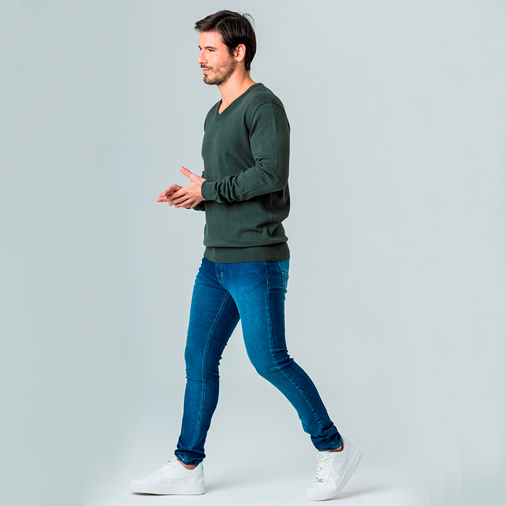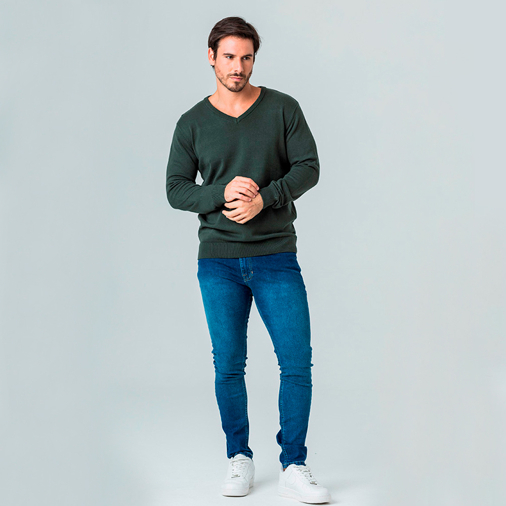 Suéter Pulôver de Tricot Gola em V Rock e Soda