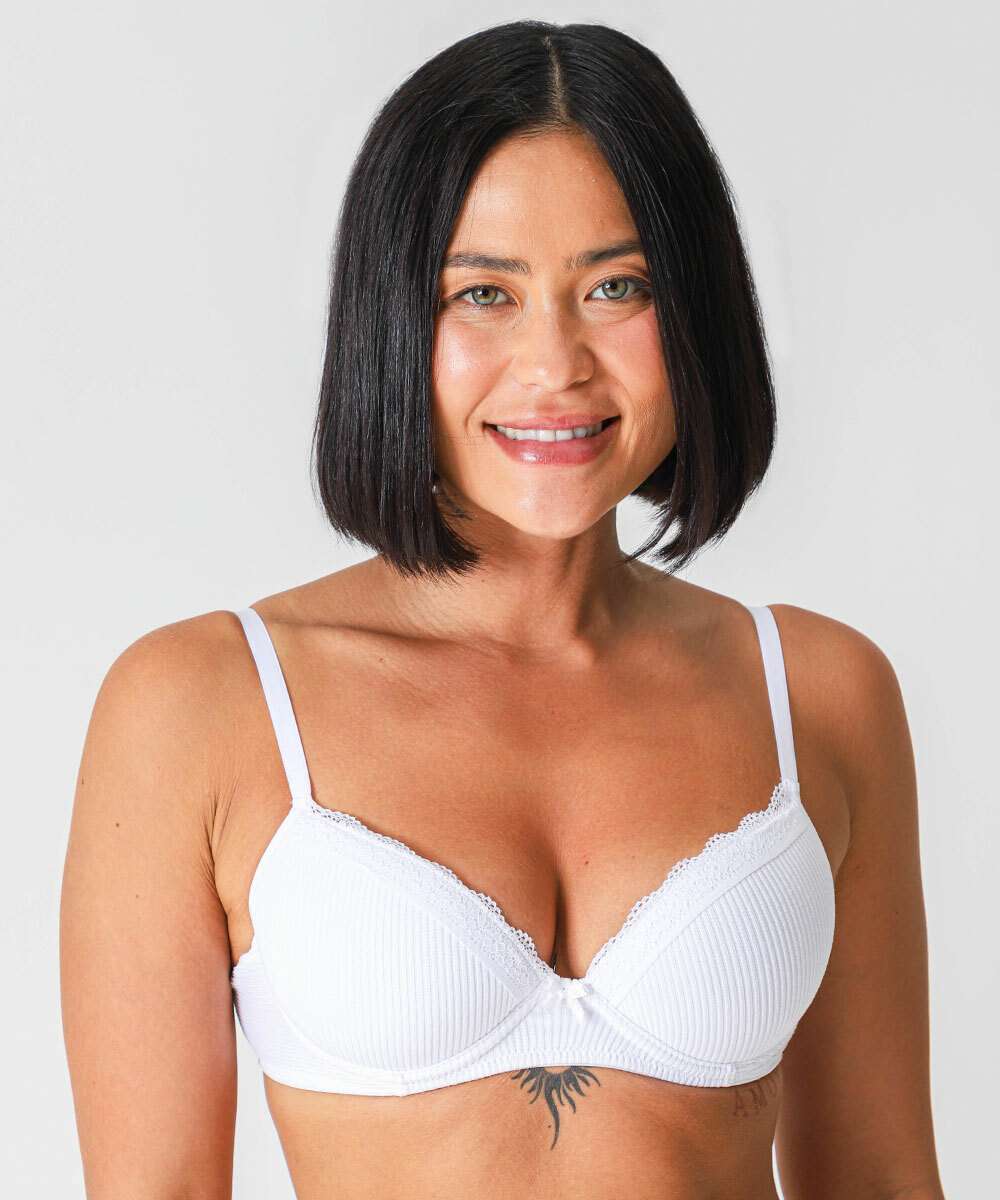 Sutiã Com Base E Com Bojo Canelado Renda Marisa Branco
