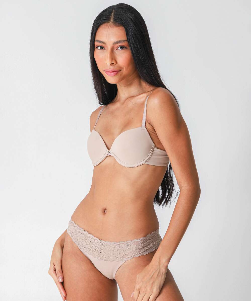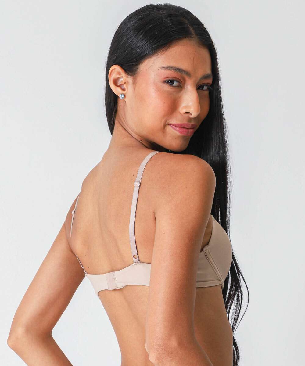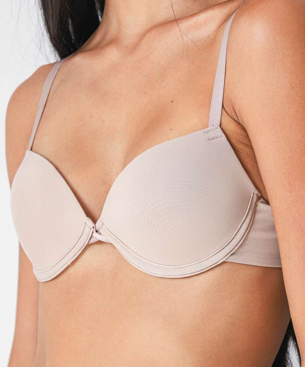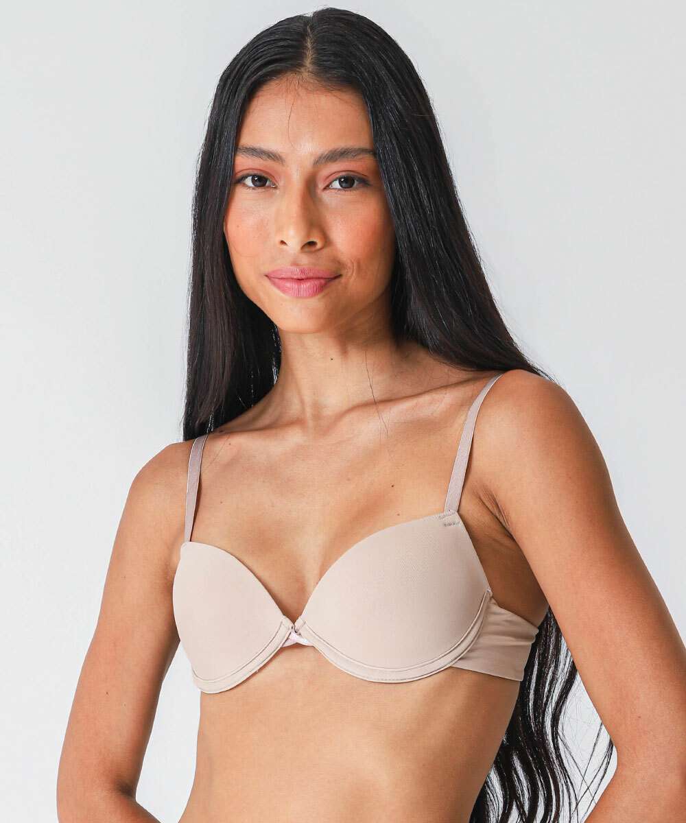 Sutiã modelo push up, confeccionado em tecido poliamida e elastano. Possui forro em poliéster, aro, bojo, alças ajustáveis, fechamento por colchetes na parte de trás, acabamento e costura no tom.