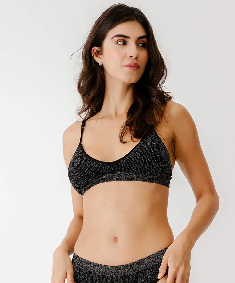 Sutiã Top Sem Costura Brilho Lurex Marisa Preto