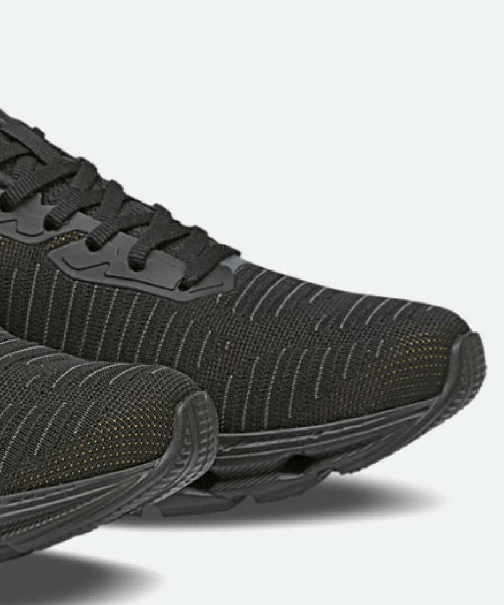 Tênis esportivo masculino, confeccionado em tecido knit, que se molda ao pé proporcionando flexibilidade e respirabilidade, e fechamento por cadarço.