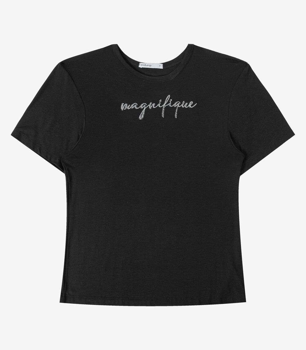 T- shirt em Viscotorcion Feminina Endless Preto