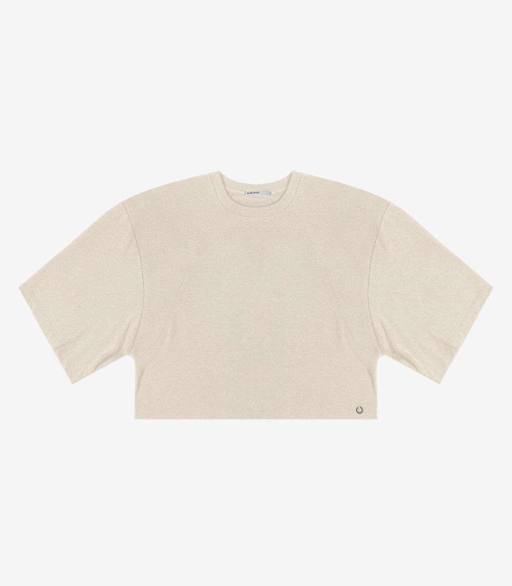 T- Shirt Feminina em Malhão e Ribana Endless Bege