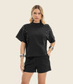 T- Shirt Feminina Gola Alta em Malhão Endless Preto