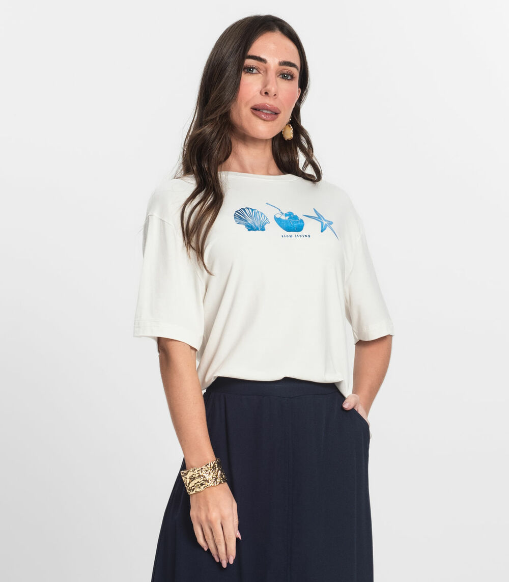 T- Shirt Feminina Manga Curta Endless Bege