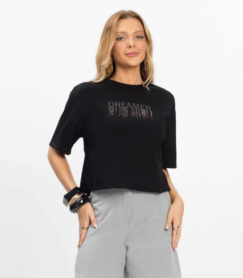 T- Shirt Feminina Meia Malha Rovitex Preto
