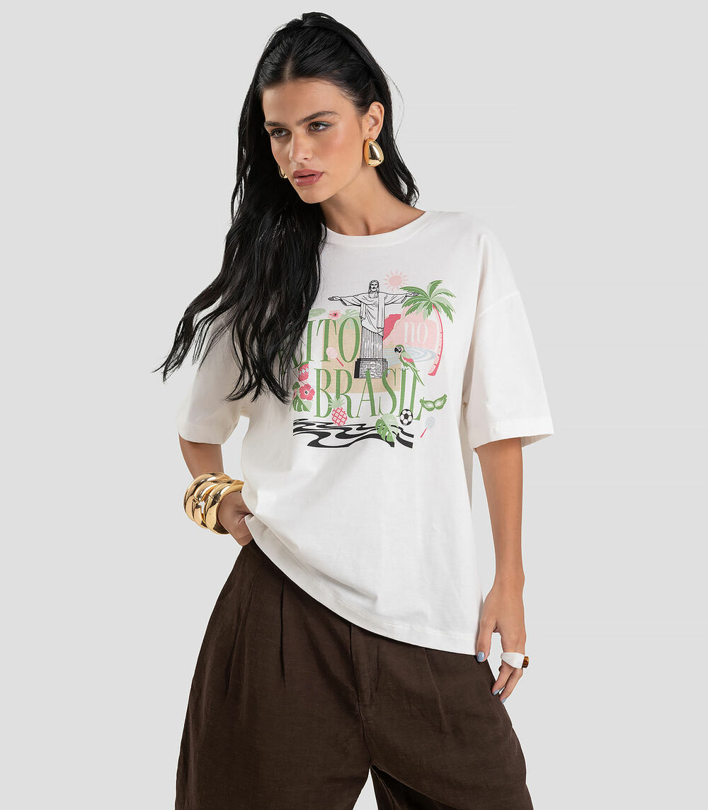 T- Shirt Feminina Oversized Brasil Dianna Bege