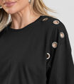T- Shirt Oversized Feminina com Ilhós Dianna Preto
