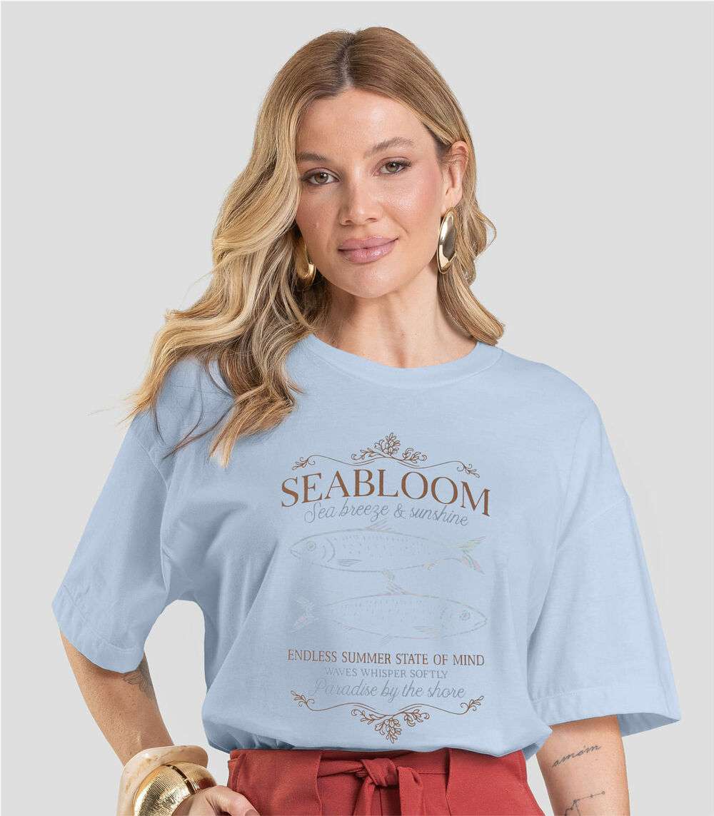 T- Shirt Oversized Feminina Estampada Dianna Azul