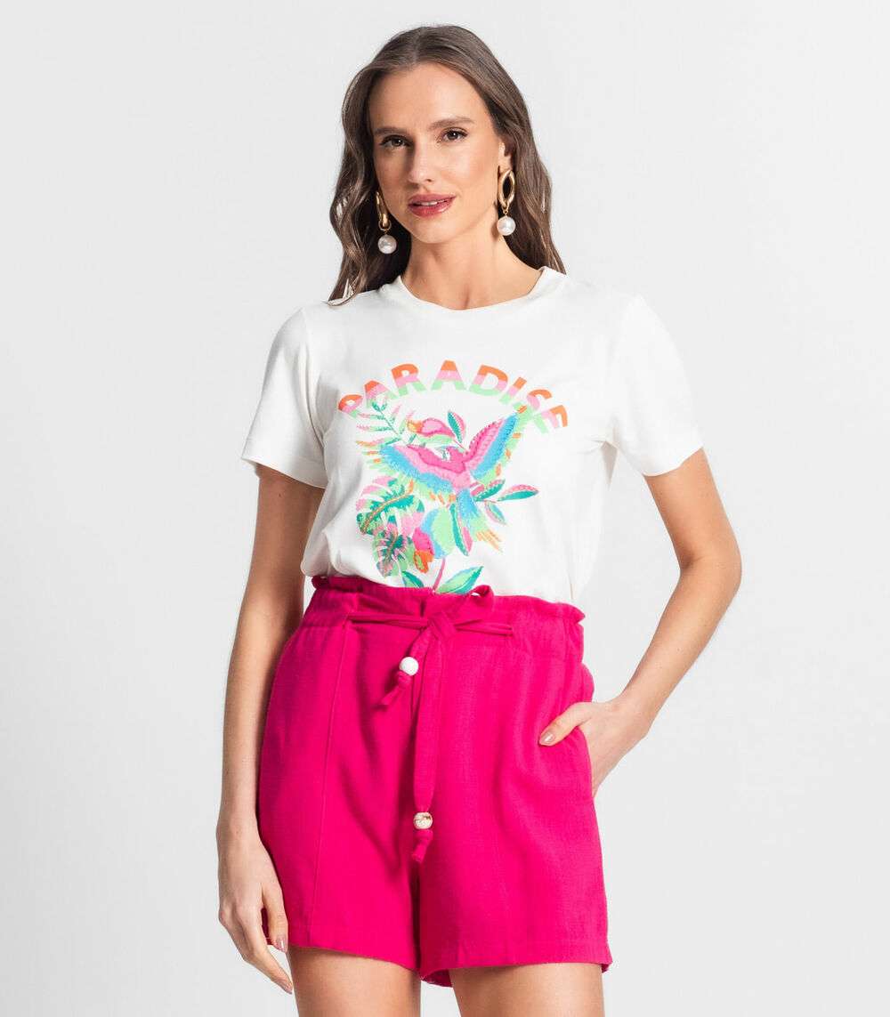 A T-shirt de Viscose Creponada Feminina Endless combina conforto e estilo. Feita em ribana de viscose, destaca-se pelo decote redondo e detalhe de estampa bordada, perfeita para um visual casual sofisticado em todas as ocasiões.