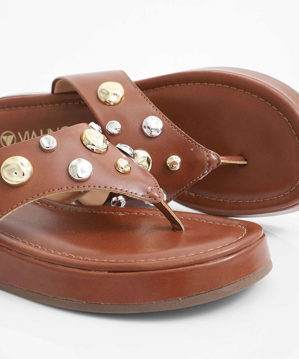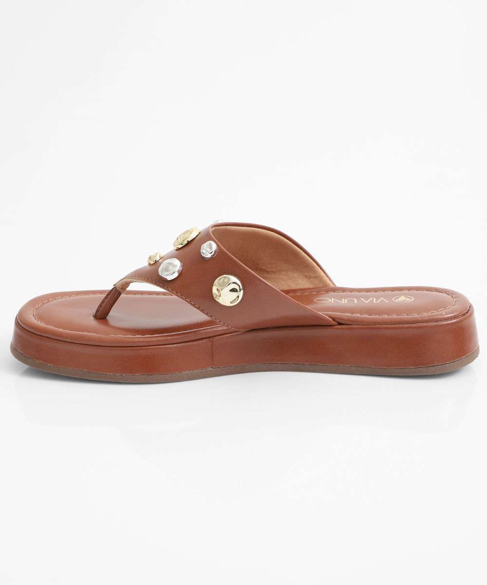 Tamanco Feminino Flatform Tachas Via Uno Caramelo