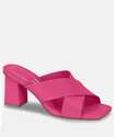 Tamanco feminino, confeccionado em material sintético, tiras transpassadas no cabedal e salto grosso. Possui palmilha macia com forro, solado flexível, emborrachado com frisos antiderrapantes para garantir maior segurança e conforto ao caminhar.