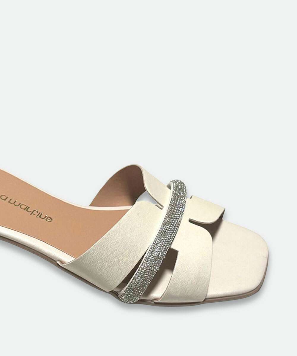 Tamanco Feminino Tira Strass Nara Martins Off White