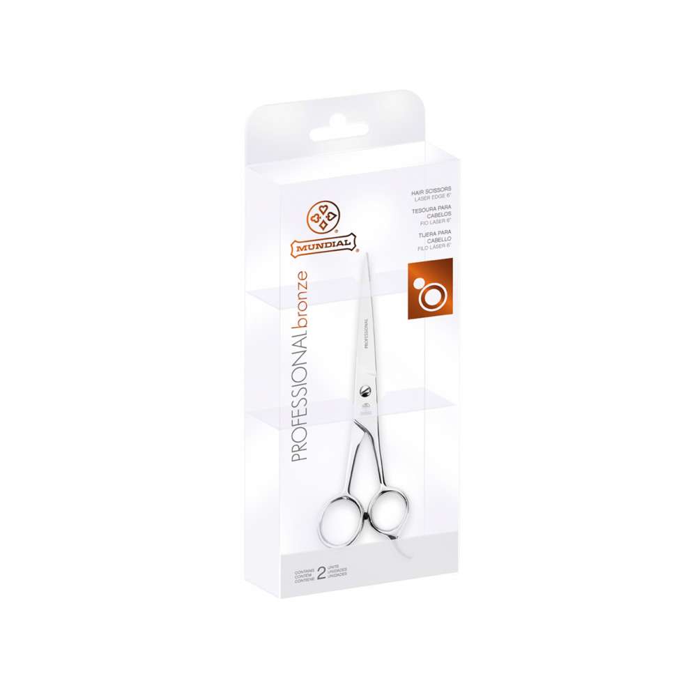 Cuidar dos cabelos faz parte do nosso dia a dia e dos pequenos prazeres que temos, não é? Ainda mais poder cortá-los da forma que quisermos! A linha Bronze da Mundial traz tesouras com os fios desenhados especialmente para cuidar das madeixas e dar aquele acabamento perfeito! A tesoura BC-343 possui fio laser para aparar pontas e realizar cortes retos ou simétricos, uma lâmina com micro-serrilhas e outra lisa polida, cabo reto com polimento fosco, amortecedor que suaviza os movimentos e descanso para dedos fixos. Tesoura de 6 polegadas (6’’). Cortar os cabelos com uma certa frequência é o que mantém a saúde dos fios e, para isso, nada melhor do que usar tesouras de qualidade! A Mundial possui uma linha completa de tesouras de cabelo para todos os níveis de profissionais, com produtos de alta performance, em aço inoxidável e adequados para as necessidades de cabeleireiros e barbeiros. São diversas linhas especialmente para cada nível de conhecimento e preparo! Fio navalha: Duas lâminas polidas na região do fio, ideal para cortes repicados, desfiados e assimétricos. Fio laser: Uma lâmina polida e outra com micro-serrilhas, ideal para aparar pontas e cortes retos ou simétricos, que exigem mais precisão. Fio desbaste: Pode ter uma ou duas lâminas dentadas, ideal para texturizar, tirar volume dos fios e dar acabamento ao corte. Produto de uso profissional ou pessoal.