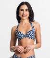 Top Biquíni Estampado confeccionado em poliéster, possui leve franzido na frente, bojo fixo com aro para melhor sustentação, costas com fechamento por amarração. Ideal para arrasar neste verão. Aposte! Não possui enchimento no Bojo**