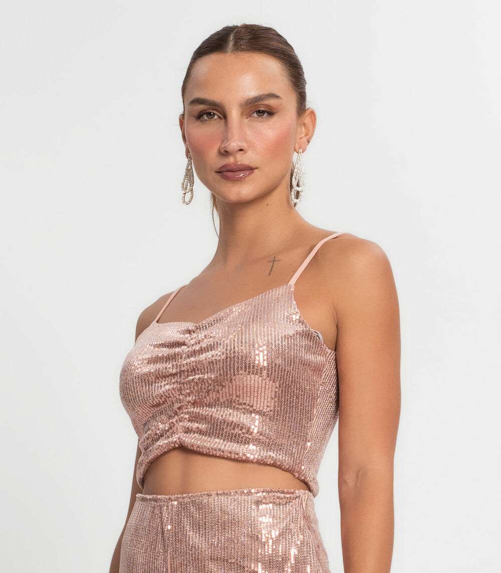 Top Cropped Em Paetê Endless Unica