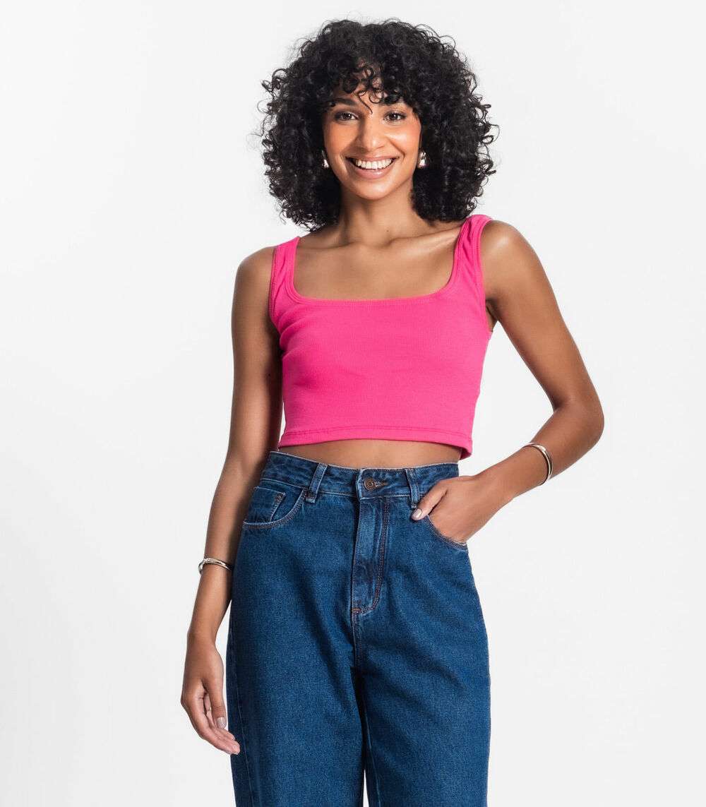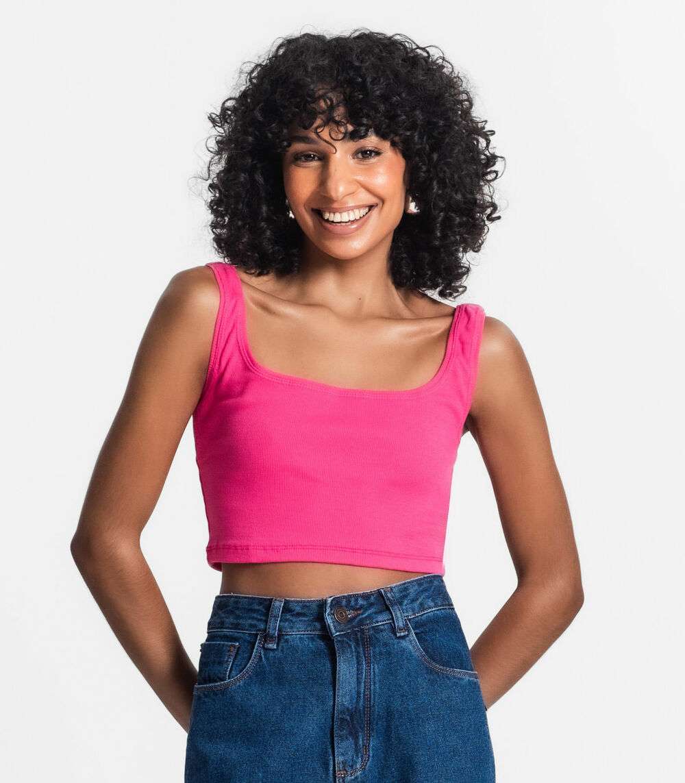 Top Cropped Ribana Básico Rovitex Rosa