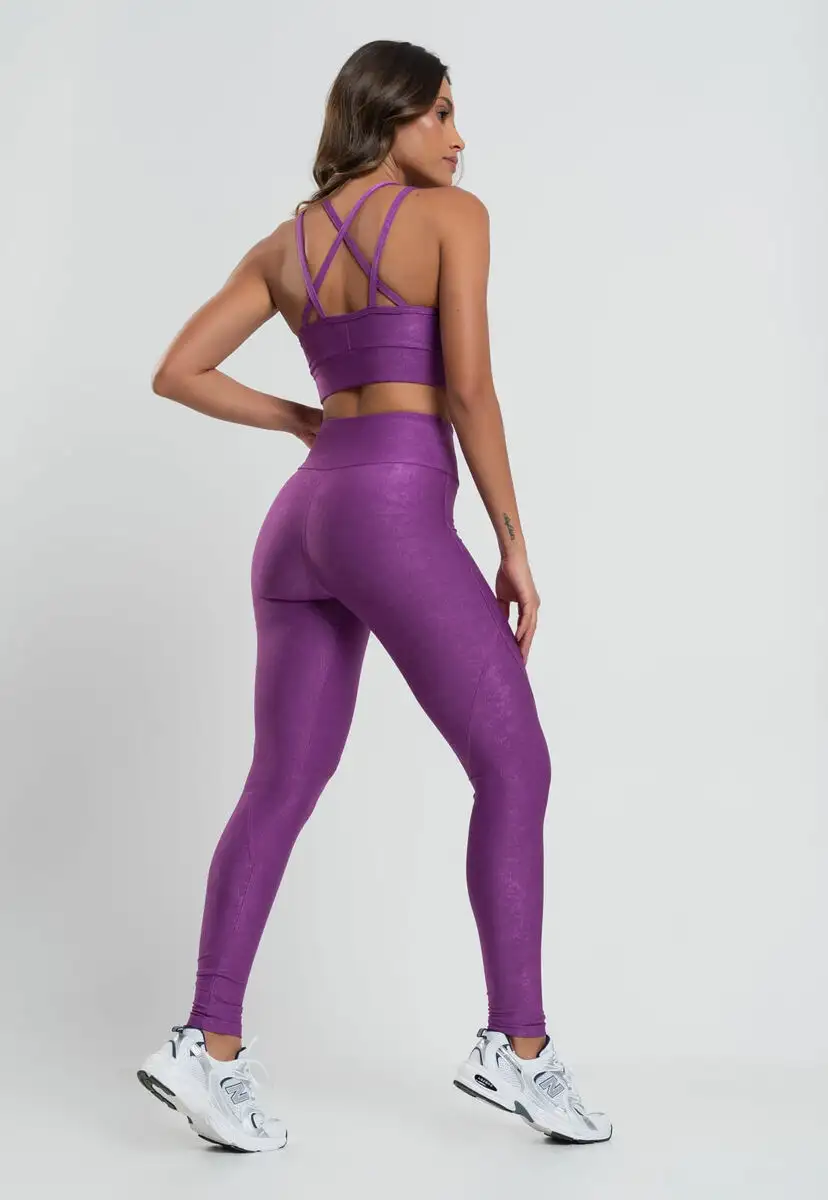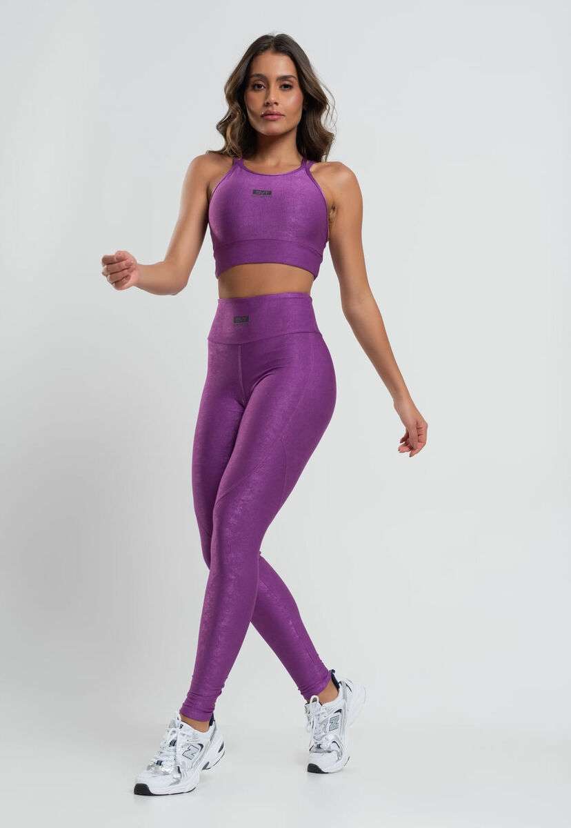 Top Suplex Canelado Brilho com Decote Alto e Tiras Roxo Salvatore Fashion