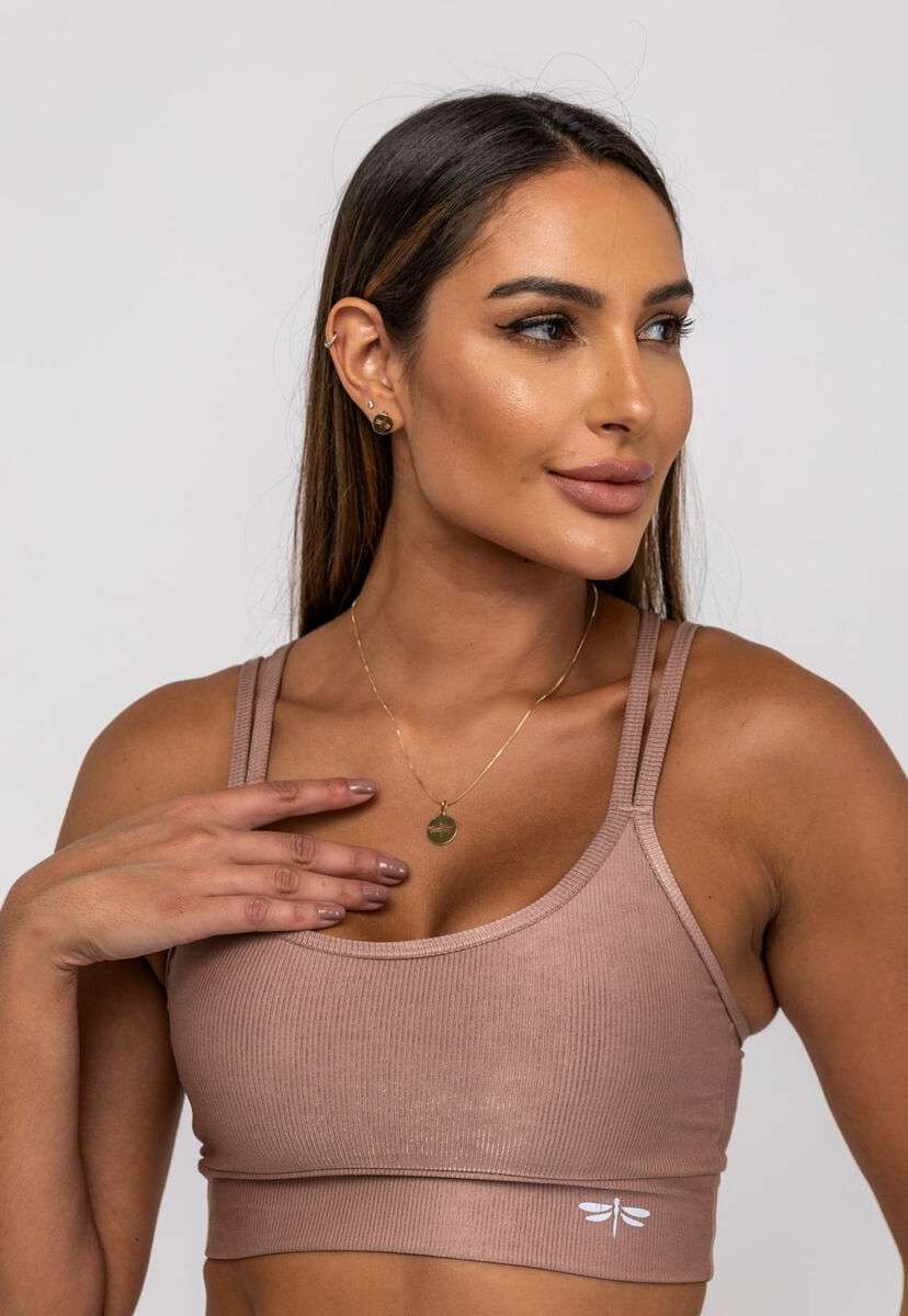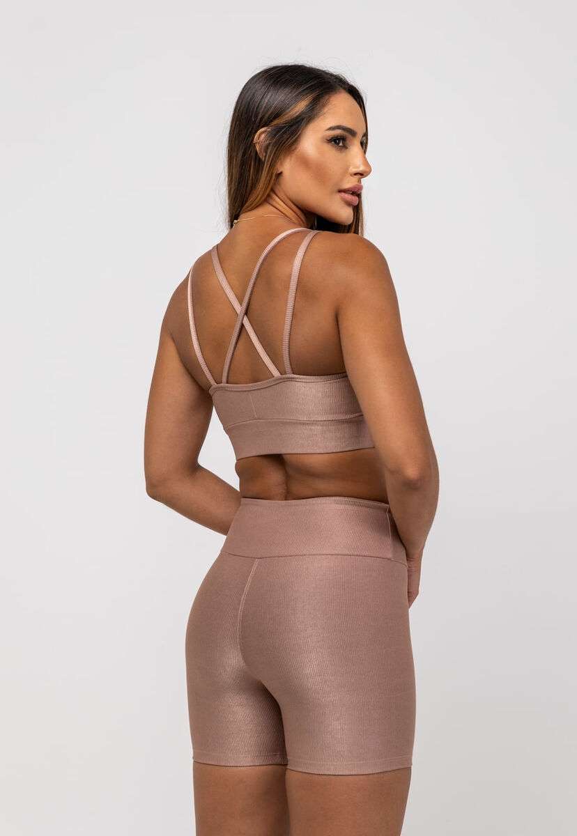 Top Suplex Canelado Brilho Decote e Tiras Marrom Salvatore Fashion