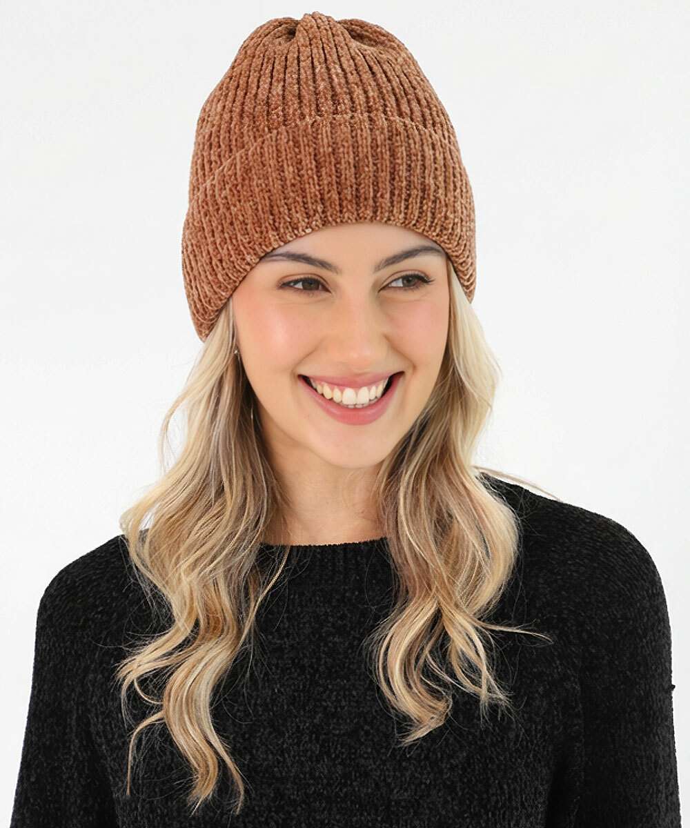 Touca Feminina Chenille Marisa Bege