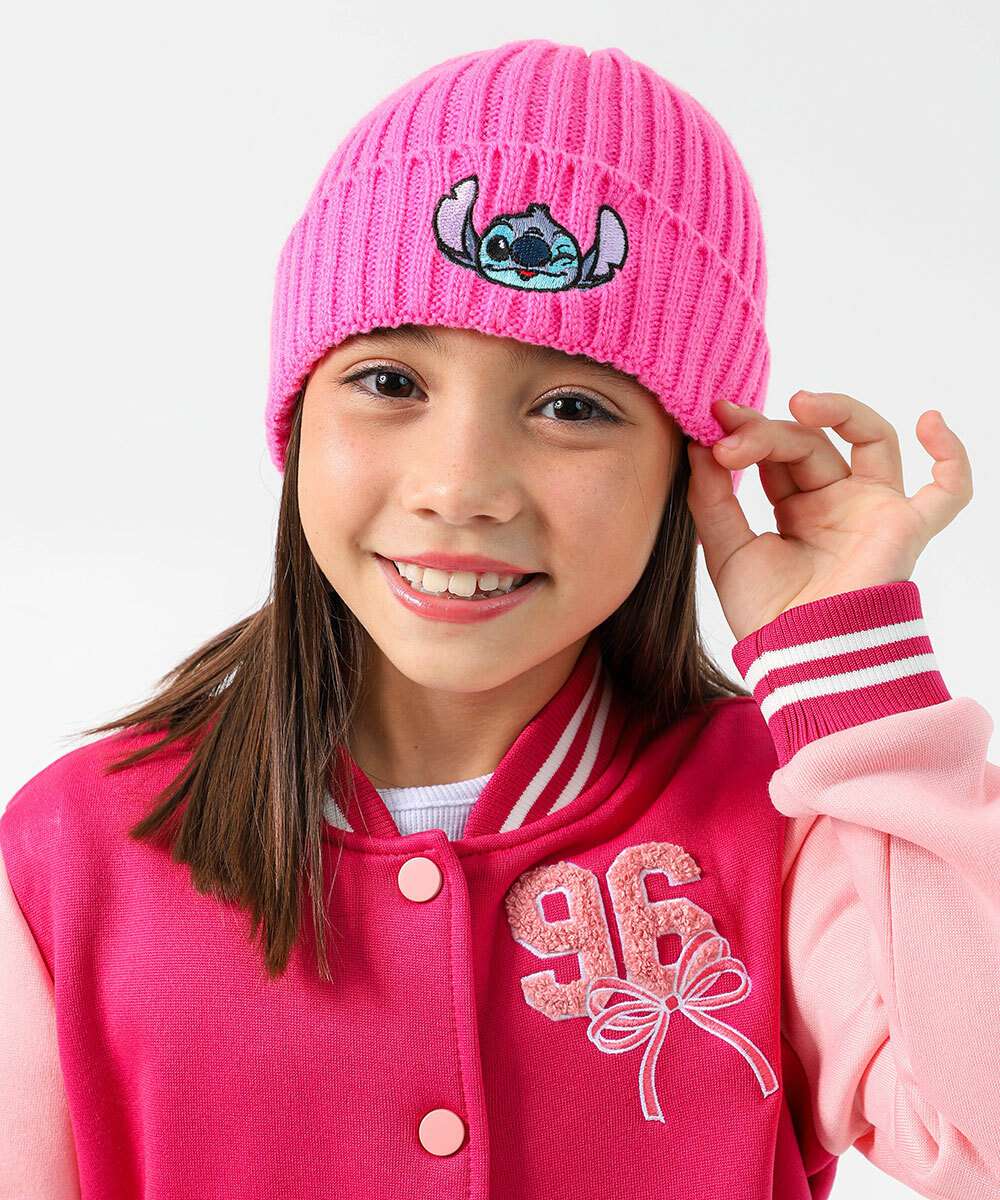 Touca Infantil Tricô Stitch Disney Tam 4 a 6 Rosa
