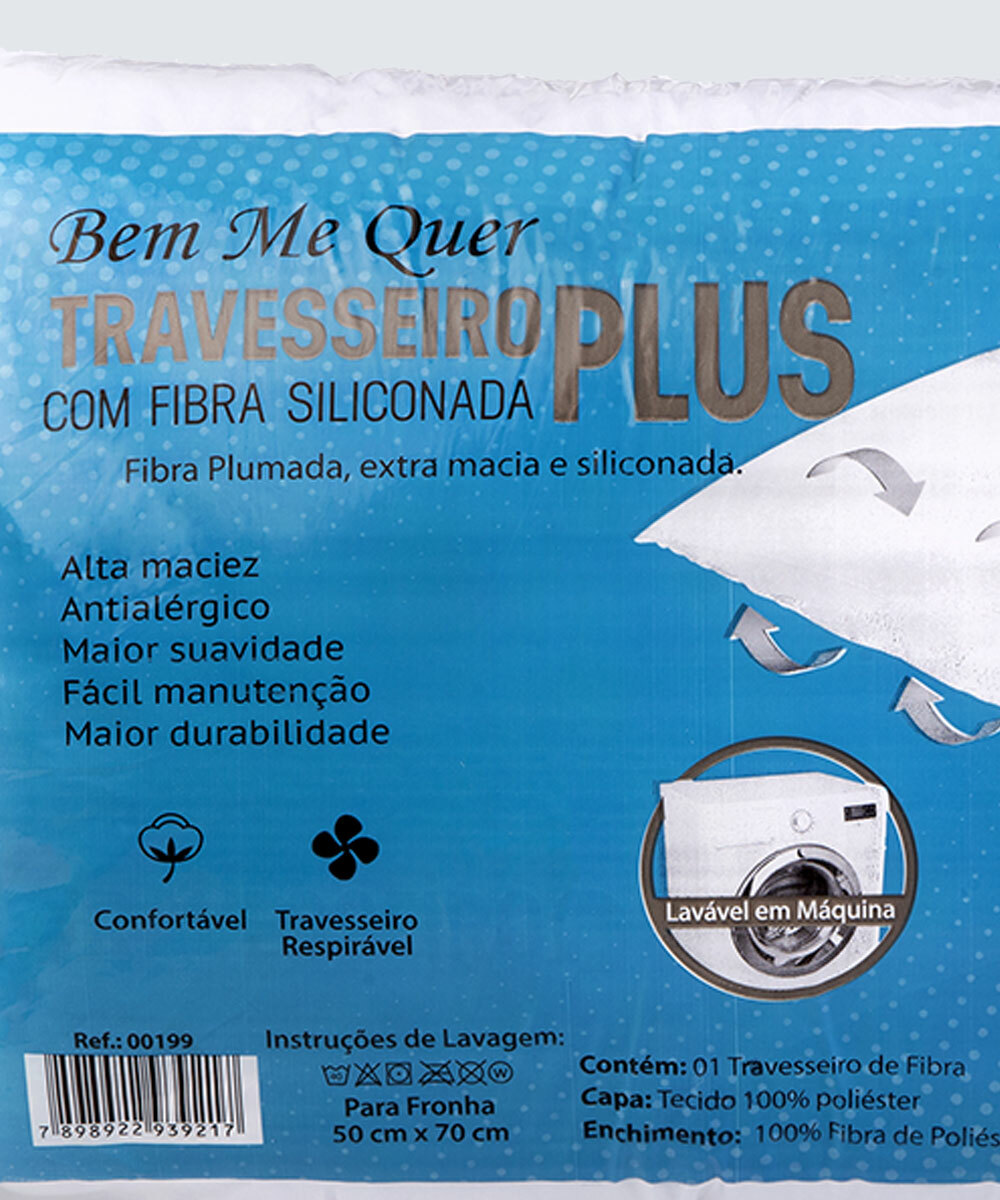 Travesseiro confeccionado em capa 100% poliéster e enchimento 100% fibra siliconada. Possui fibra plumada, tecido antialérgico, alta maciez e suavidade, tecnologia multifilamento que garante conforto e durabilidade.
