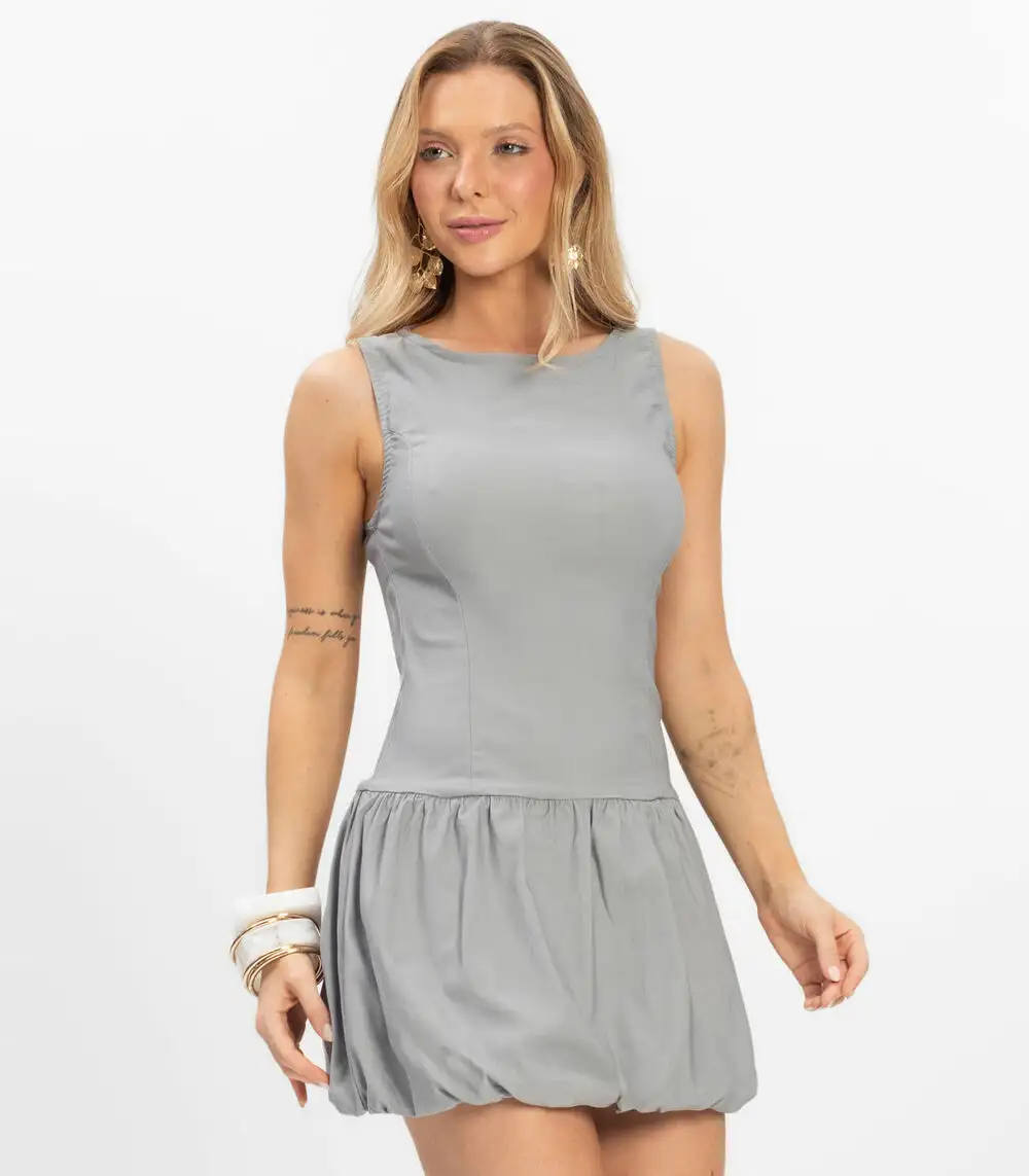 Vestido Curto Balonê Feminino Renaluci Cinza