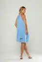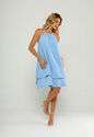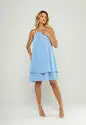 Vestido Curto Com Alças Finas e Babado Duplo Azul Salvatore