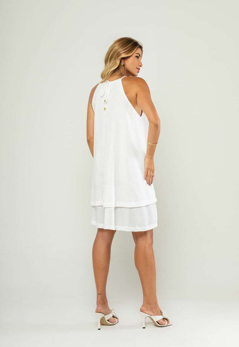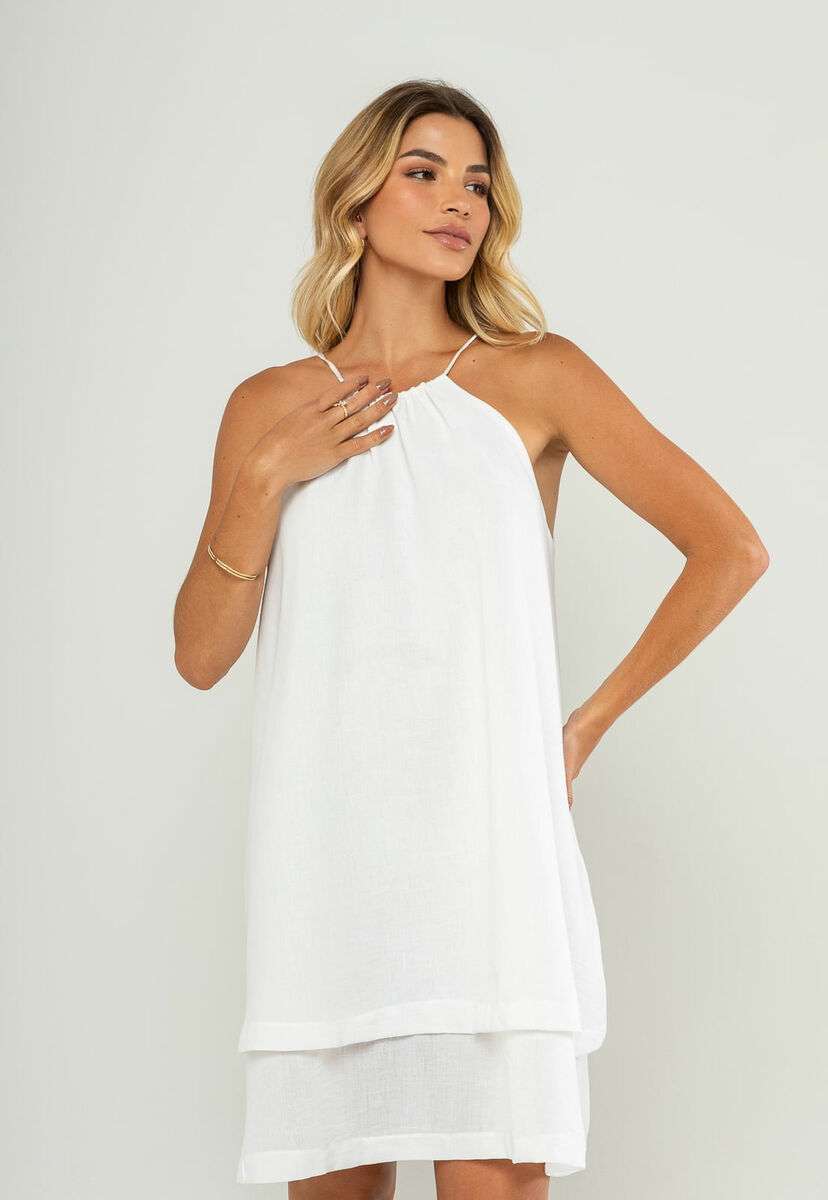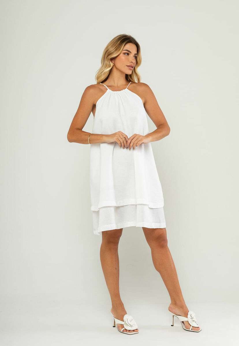 O vestido curto com alças finas e babado duplo é a escolha ideal para quem busca um visual leve, moderno e elegante. Com modelagem soltinha e fluida, ele oferece movimento natural ao vestir, sendo perfeito para dias quentes, passeios, eventos ao ar livre ou encontros casuais.O modelo conta com alças finas, decote com leve franzido e barra em duas camadas, criando um efeito de babado duplo que traz charme e delicadeza.Para maior conforto e segurança, o vestido possui forro interno, garantindo que a peça não marque e mantenha excelente caimento.Confeccionado em tecido leve e de toque macio, ele é versátil e combina com diversos estilos — desde looks minimalistas até produções mais arrumadas. • Modelagem soltinha e fluida • Alças finas • Decote com leve franzido • Barra com duas camadas (babado duplo) • Possui forro interno • Fecho posterior Modelo veste tamanho P. Medidas da modelo: Altura 1,73cm | Busto 86cm | Cintura 67cm | Quadril 99cm Composição: 100% Poliéster. Forro: 100% Poliéster.