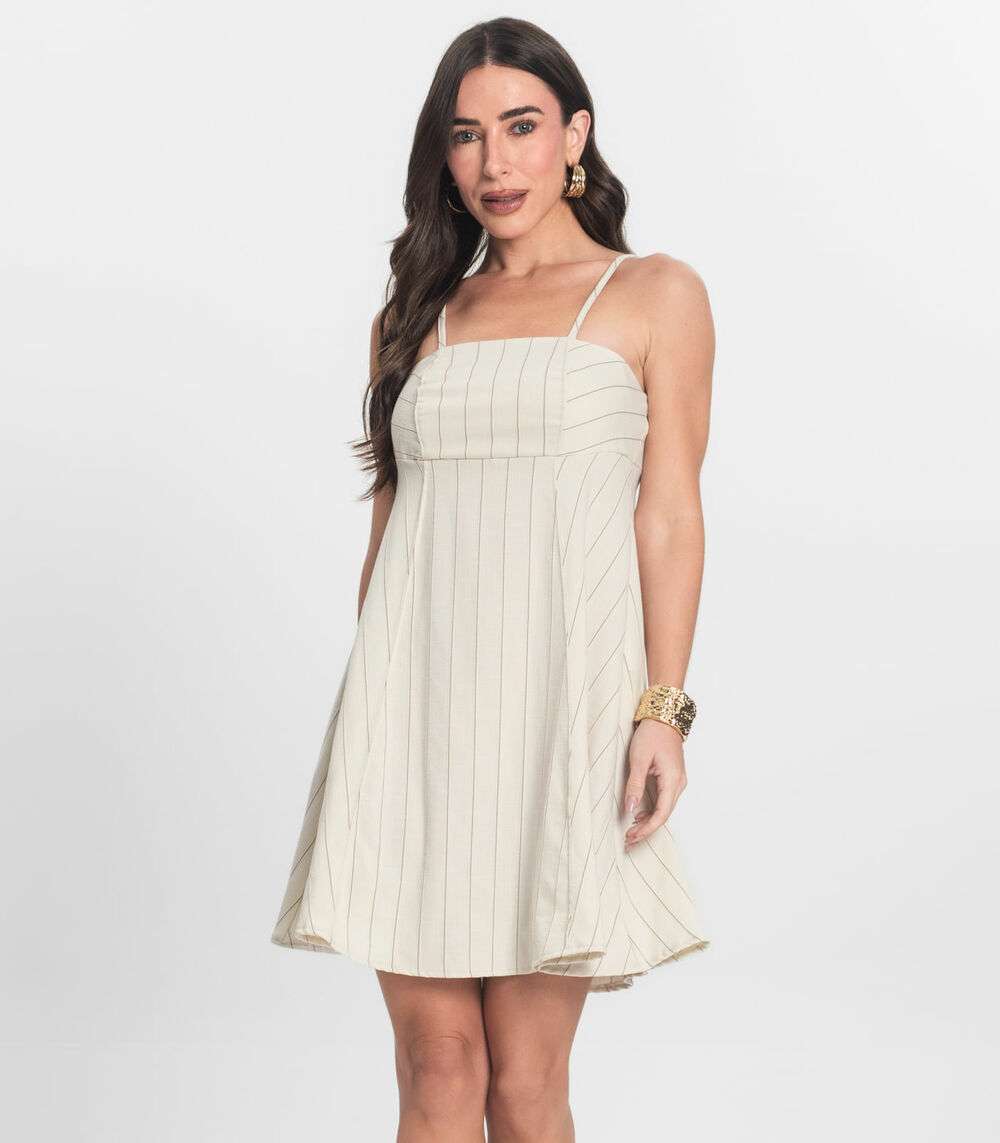 Vestido Curto De Alças Decote Quadrado Endless Bege