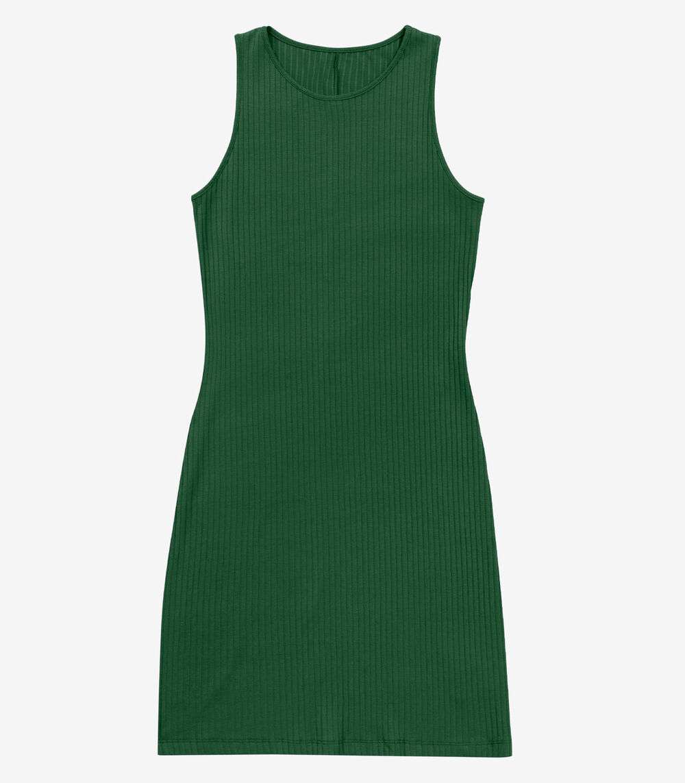 Vestido Curto Em Ribana Canelada Rovitex Verde