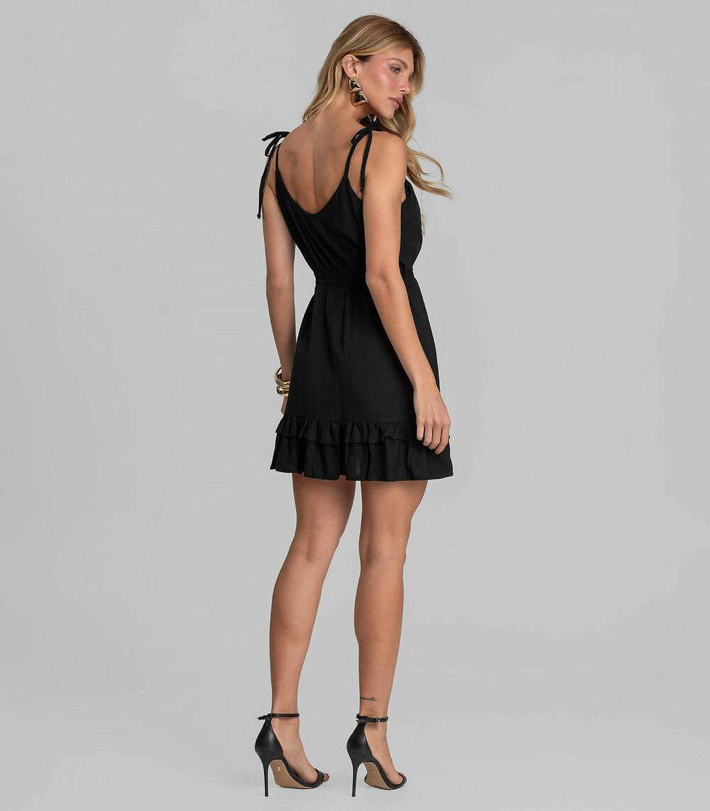 Vestido Curto Feminino De Alça Em Viscose Dianna Preto