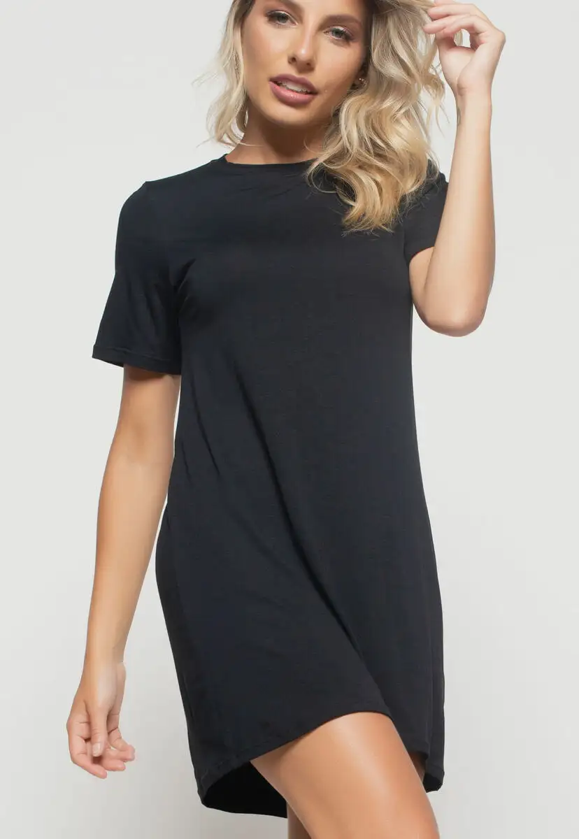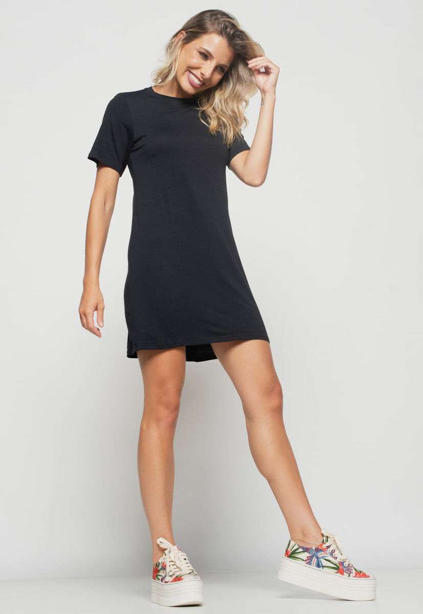 Vestido Curto Gola Redonda Preto Salvatore Fashion
