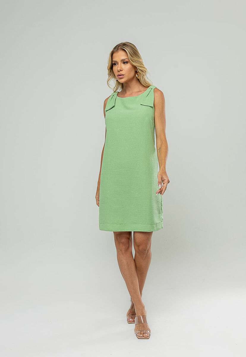 O vestido curto feminino regata é a escolha ideal para quem busca elegância minimalista, conforto e versatilidade. Confeccionado em tecido leve e de excelente caimento, o modelo proporciona um visual sofisticado e ao mesmo tempo prático para diversas ocasiões.O grande destaque da peça está no detalhe em laço estruturado nos ombros, que adiciona charme e modernidade ao design, valorizando a silhueta de forma sutil. O vestido possui forro interno, garantindo conforto, segurança e melhor acabamento durante o uso.Com modelagem reta, comprimento curto e design atemporal, é perfeito para compor looks casuais elegantes ou produções mais refinadas, dependendo dos acessórios escolhidos. Uma peça curinga para o guarda-roupa feminino. • Laço estruturado nos ombros • Possui forro interno • Modelagem reta • Modelo regata Modelo veste tamanho P. Medidas da modelo: Altura 1,73cm | Busto 86cm | Cintura 67cm | Quadril 99cm Composição: 100% Poliéster. Forro: 100% Poliéster.