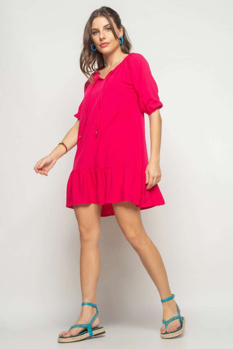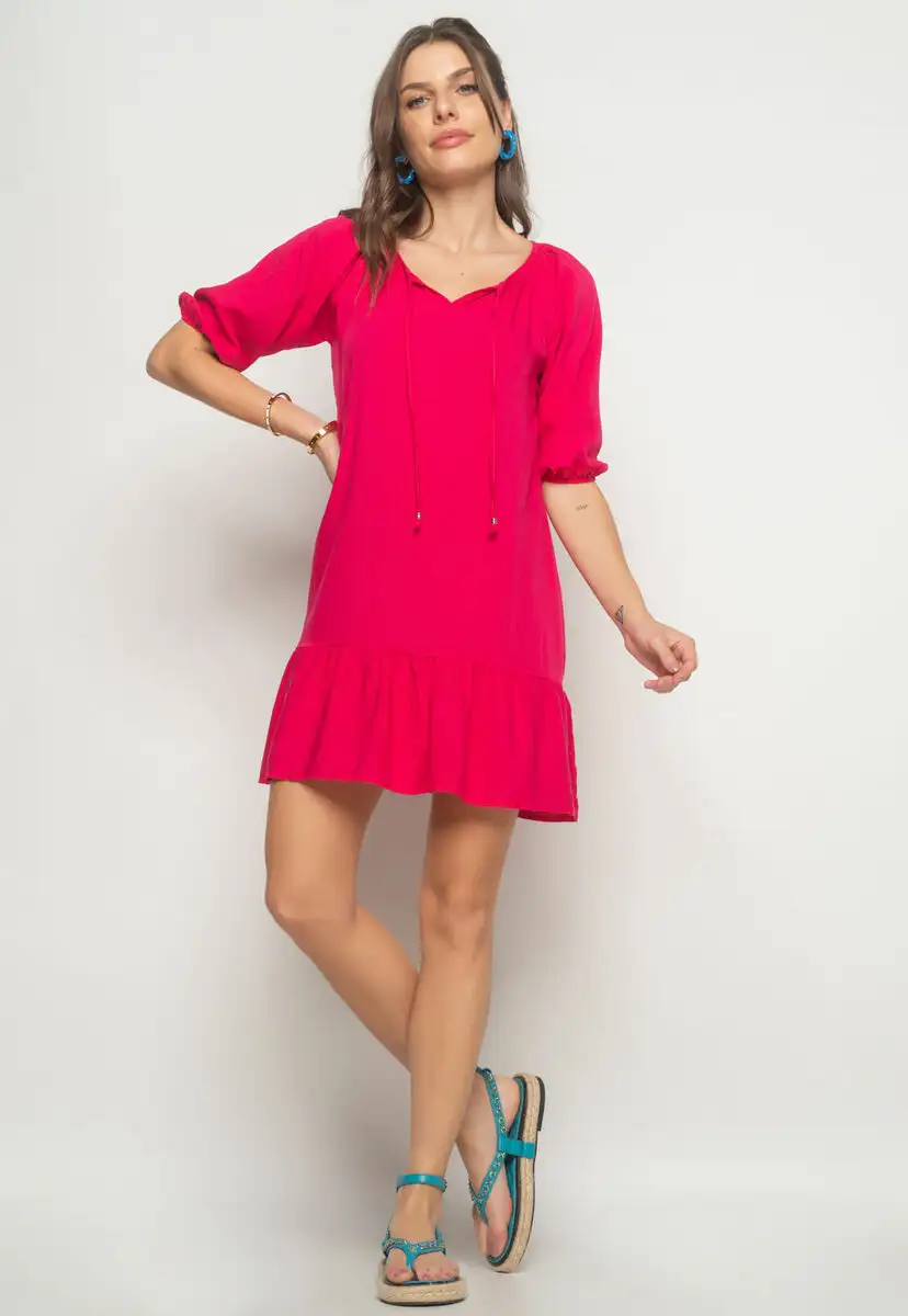 Vestido Curto Viscolinho Com Babado Rosa Salvatore Fashion