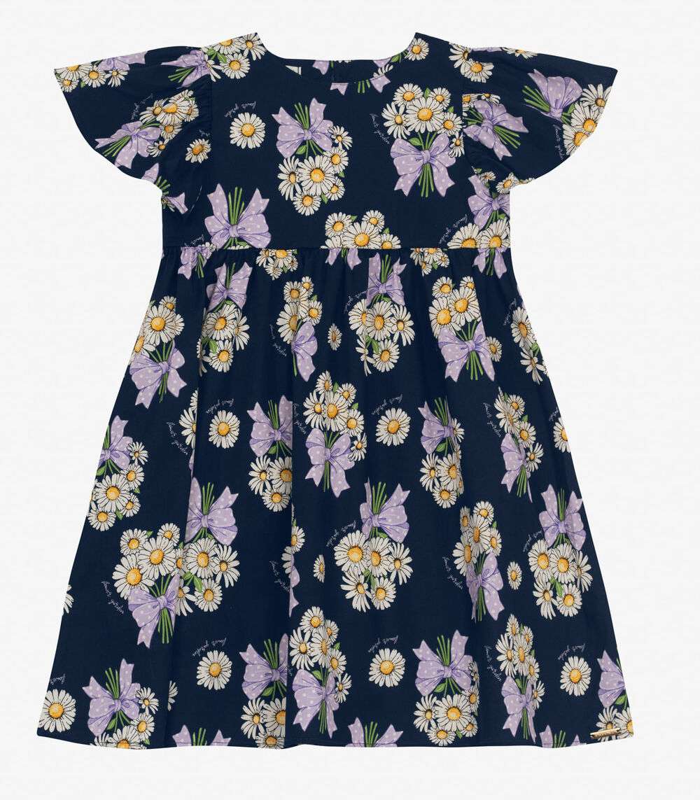 Vestido em Popeline Estampado Trick Nick Azul Marinho