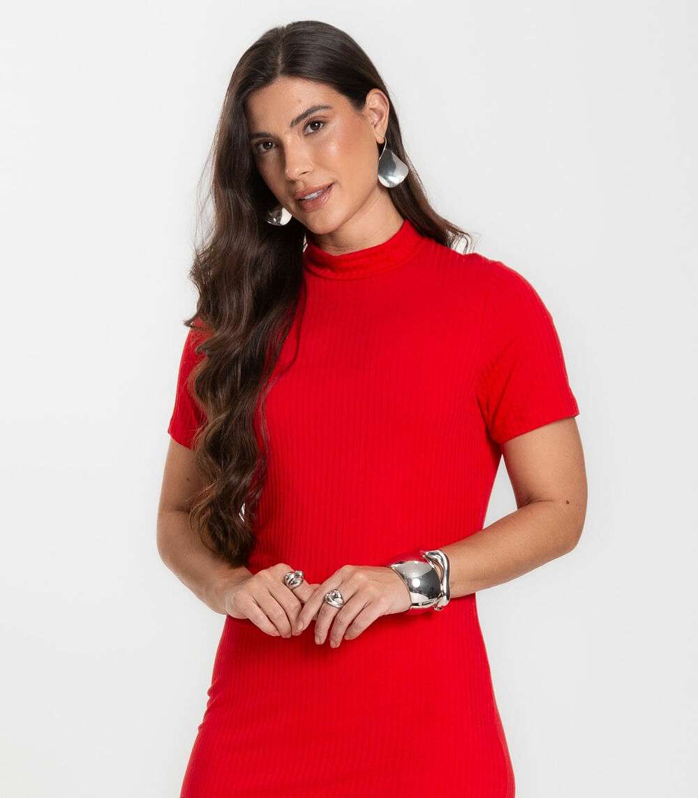 Vestido Feminino Canelado Infinita Cor Vermelho