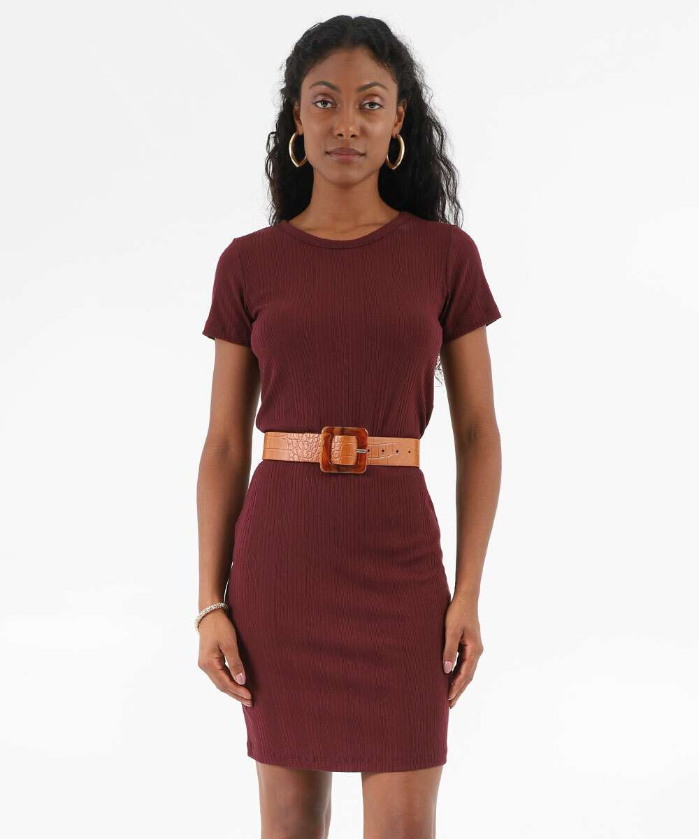 Vestido Feminino Canelado Manga Curta Marisa Vinho