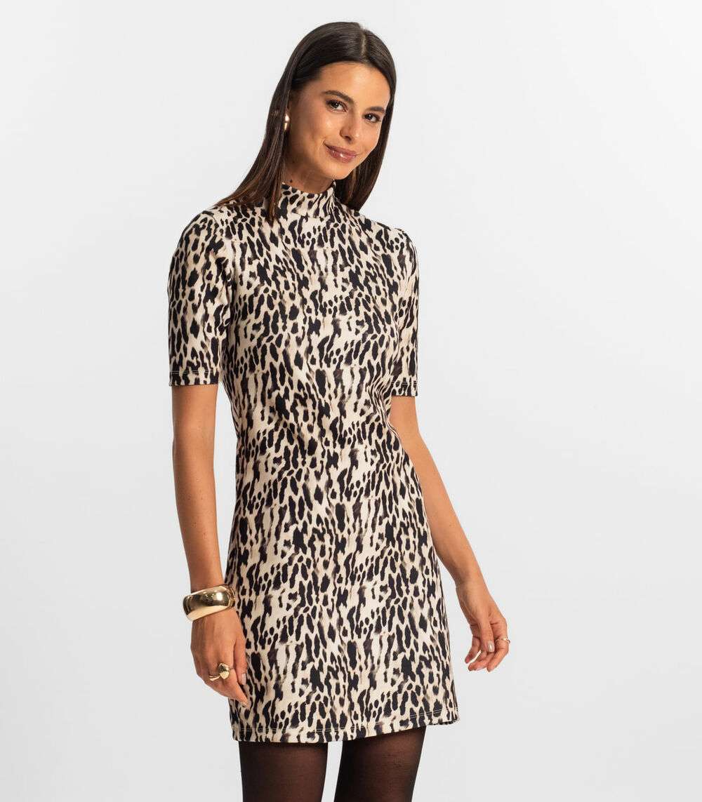 Vestido Feminino Curto Animal Print Rovitex Bege